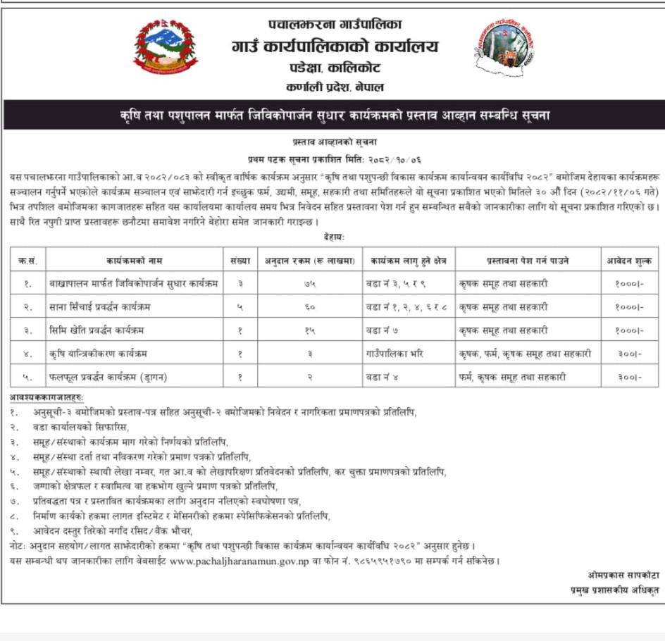 कृषि तथा पशुपालन मार्फत जीविकोपार्जन सुधार कार्यक्रमको लागि प्रस्तावना आवहान सम्बन्धमा